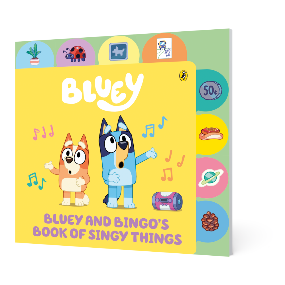 Ooh, singing things! Sing along to Bluey and Bingo's favourite songs, including 'Miss Mary Mack' and 'Five Fat Sausages'. A gorgeous tabbed board book for kids of all ages. Bluey is a preschool show about Bluey, a blue heeler pup, and her family. The show has amassed legions of dedicated fans and hugely popular ranges of books, toys, clothes, games and more.