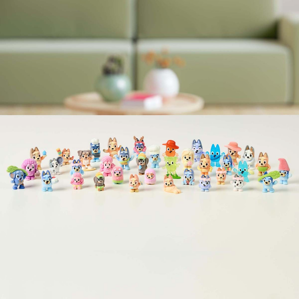 Bring home Bluey in a brand new way with the Bluey Fuzzies 2 Pack Mystery Figure! These mini collectible figures look as good as they feel, thanks to their soft, flocked finish that gives each figure their signature fuzzy feel. Every figure is inspired by a fan-favourite episode, so you can recreate iconic moments from the show. Each Surprise 2 Pack comes with 2 blind-packaged figures styled straight from episodes like "Magic Xylophone", "The Sign", "Grannies", and more. It's a full surprise every time, you won't know who you're getting until you open the pack. Use the collector's guide to check off each figure as you go and build your ultimate collection! Each pack also includes a double-sided trading card featuring character art on the front and background art from the episode on the back. And to make collecting even more exciting, your pack might be hiding a special chase figure or a trading card with a rare finish just waiting to be found. Kick off your collection today and dive into the world of Bluey Fuzzies!