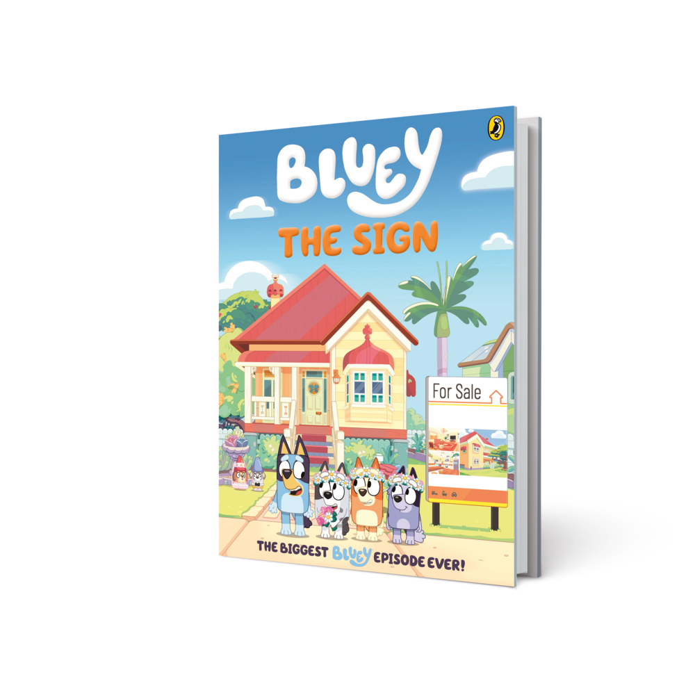 Based on the hit ABC KIDS TV show! A deluxe hardback comic-style chapter book based on the Bluey global sensation 'The Sign'. Join Bluey and her family in their biggest adventure ever! When a For Sale sign pops up in the front yard, Bluey, Bingo and their cousins try to stop the house from selling. But they need Frisky's help and they can't find her! Will everything work out so Bluey and Bingo can stay or will they have to move house? We'll see.