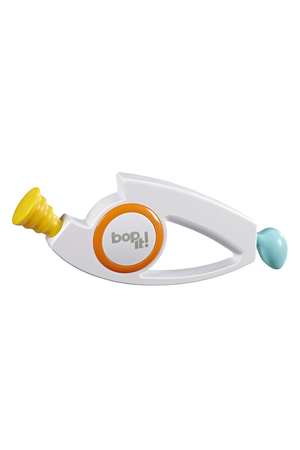 For years players have loved the simple and exciting "Bop It, Twist It, Pull It" actions featured in this iconic electronic Bop It! game. Players can face-off in a multiplayer game with the pass and play feature or beat their best in solo mode. The game unit has 3 different volume settings and announces the high score at the start of each solo game. It's a great game to bring to parties and get-togethers with family and friends.