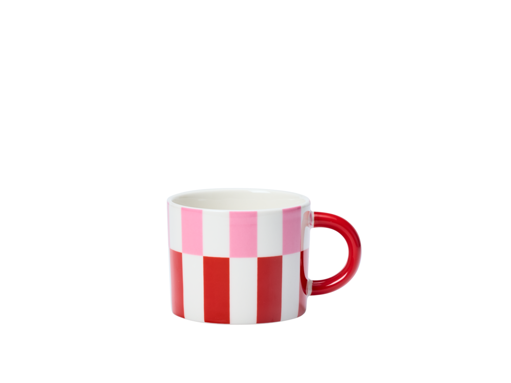 Enjoy a comforting cup of your favourite hot drink in this delightful mug featuring a pink, white, and red striped pattern. Mug is dishwasher and microwave safe and comes in a matching box for easy gifting or storage.