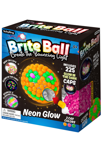 Brite Ball Glow is the bouncy ball that lights up your very own creations! Design it, watch it glow, and then bounce it for a light show. Brite Ball Glow comes with 75 pink, orange, and green glow-in-the-dark caps for fun in day or night. Create your own emoji, practice a pattern, or make something totally unique. Included caps are easy to pop in, and stay put during play. Make playtime shine with Brite Ball Glow!- Ages 5+