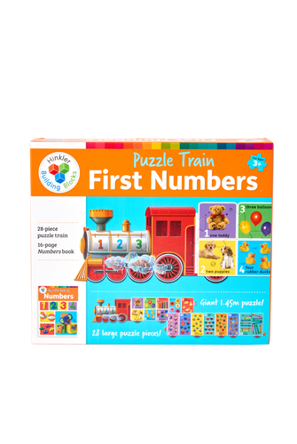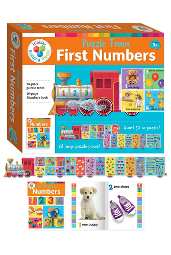 Learning to count is fun with Building Blocks: Puzzle Train First Numbers. This 28-piece jigsaw makes a large 145-cm long (57-in long) train puzzle and features numerals and number words and bright, engaging pictures. This modern and immersive puzzle is supported by a 16-page numbers book! Hinkler's Building Blocks series is the ideal start to any child's early learning journey, with bright engaging images. The easy-to-handle rounded jigsaw pieces assist with reading and fine motor skills and help make learning fun.- Ages 3+
