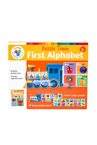 Learning the alphabet is fun with Building Blocks: Puzzle Train First Alphabet. This 28-piece jigsaw makes a large 145-cm long (57-in long) train puzzle featuring upper-case and lower-case letters and bright, engaging pictures. This modern and immersive puzzle is supported by a 16-page alphabet book! Hinkler's Building Blocks series is the ideal start to any child's early learning journey, with bright engaging images. The easy-to-handle rounded jigsaw pieces assist with reading and fine motor skills and help make learning fun.- Ages 3+