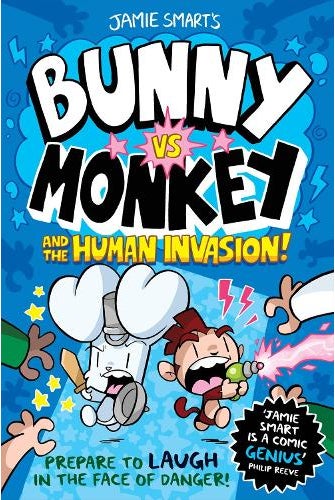 Since he crash-landed to Earth in a rocket, Monkey has been causing absolute mayhem! Bunny and the gang (Squirrel, Pig [the Pig], Action Beaver, and Skunky the Inventor) have almost had enough. In this rollicking comic extravaganza, the pint-sized friends must tackle a helliphant, rocket-powered hot air balloons, and the most mind-boggling creatures of all... hew-mans... Jamie's art and storytelling fizz with exuberance - the pages turn themselves in this addictive collection of stories.