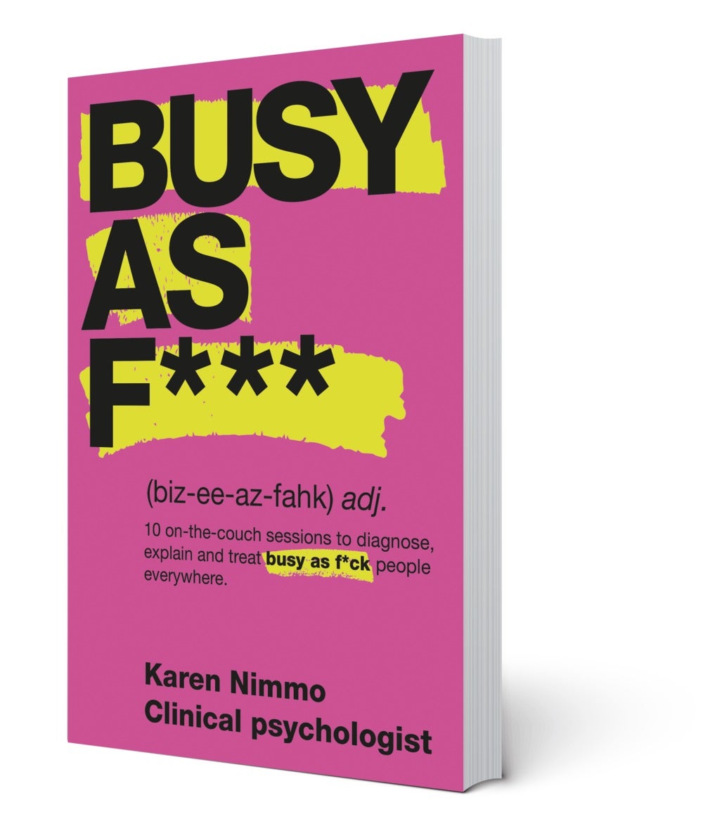 In 10 on-the-couch sessions, New Zealand clinical psychologist Karen Nimmo diagnoses, explains and treats Busy as F*** syndrome, the condition that's consuming us all, whether we realise it or not. If we are going to squeeze the most from ourselves and our all-too-short lives, we need to be able to gauge when our Busy as F***ness is compromising (or drip-feed destroying) our physical and emotional health, when we're hurting people we love and when we're becoming that person others want to hide from. In these pages you'll meet people who are facing the problems most commonly reported in our Busy as F*** worlds. Some will resonate with you - or you'll spot traits of people you know. Whenever you get an 'aha' moment, you'll find tips, tools and tactics to guide your own journey.