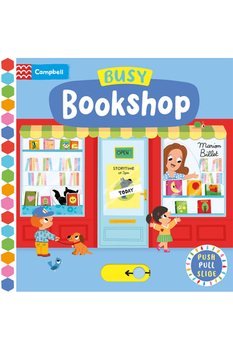 Push, pull and slide the scenes to bring the Busy Bookshop to life! Change the pictures in a book, pull make a dinosaur pop up and help the author turn the pages as he reads. Perfect for toddlers who like to play as they read, this bright and colourful board book will delight little ones with gentle rhyming text, easy-to-handle mechanisms and wonderful illustrations by Marion Billet, which is part of the popular Busy Book series. Listen along to an audio recording of this story by scanning the QR code on the back cover. Discover more days out with Busy Airport, Busy Swimming and Busy Farm.
