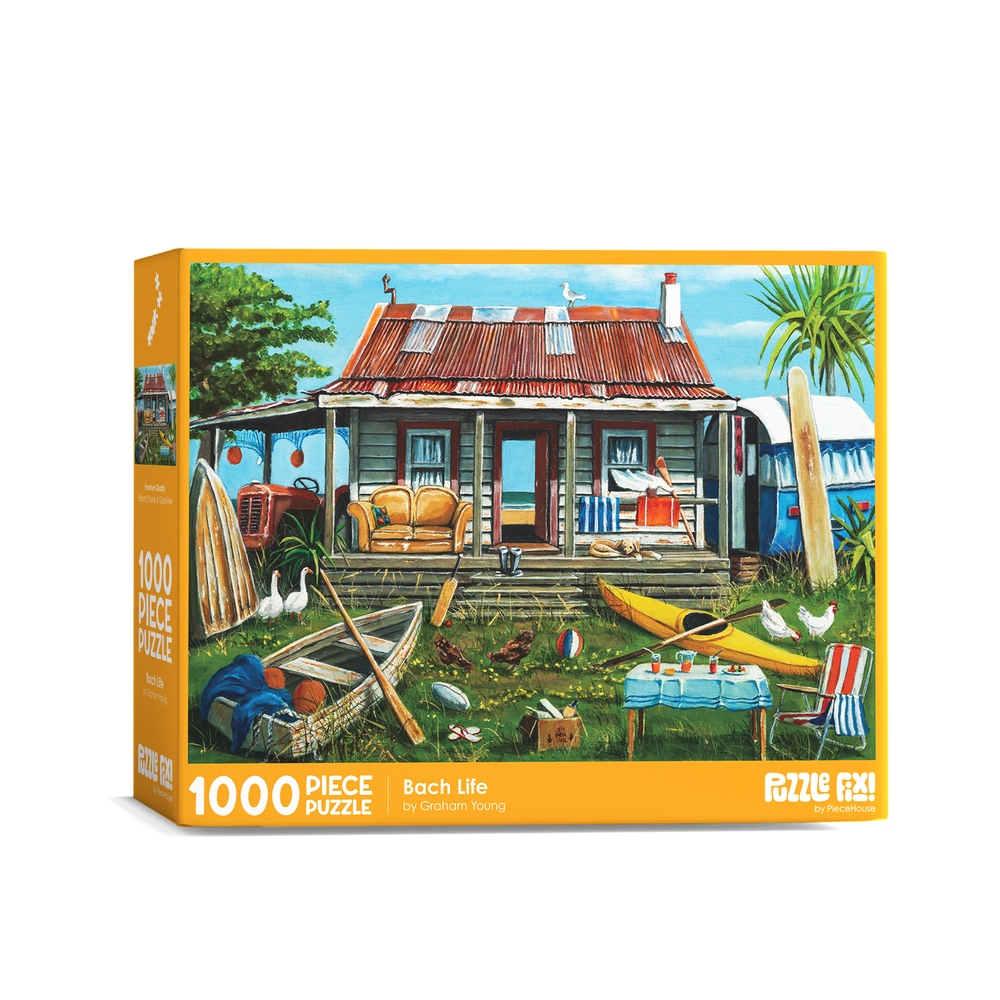Piece together a delightful image that absolutely radiates classic Kiwiana and the feeling of growing up in New Zealand, in this Calling All Kiwis puzzle with 500 XL pieces. Collect all in the series: Buzzy Bee & Friends, Do Not Disturb, Ruru Sunset, Ewe Beauty, General Store, Tui Mountain. Finished puzzle measures 68.8cm x 49.3cm.