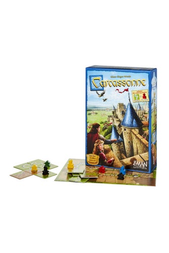 Players develop the area around Carcassonne and deploy their followers on the roads, in the cities, in the cloisters, and in the fields while creating a perfect city landscape. Each turn the area becomes larger and players may deploy their followers as thieves, farmers, knights and monks to control and score points. With each tile placed, strategies will be tested and the skill of the players will determine who stands victorious. Includes free mini expansions: The River and The Abbot.