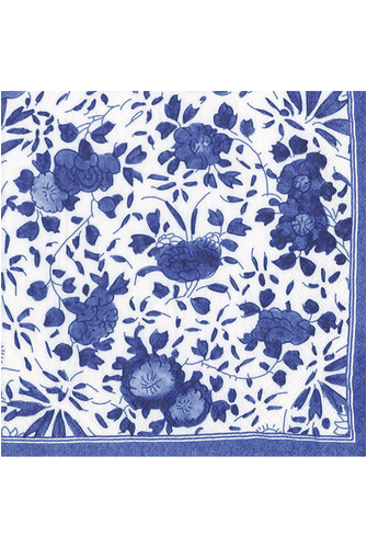 A pack of 20 3-ply lunch napkins featuring stunning blue floral delft patterns on a white background from Caspari. Caspari napkins are produced using environmentally sound raw materials and are printed with non-toxic, water soluble dyes.