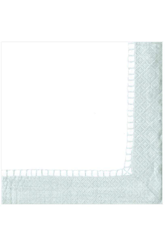 A pack of 20 3-ply lunch napkins featuring an elegant linen design with a silver border from Caspari. Caspari napkins are produced using environmentally sound raw materials and are printed with non-toxic, water soluble dyes.
