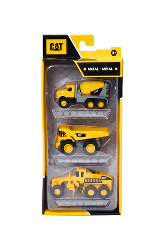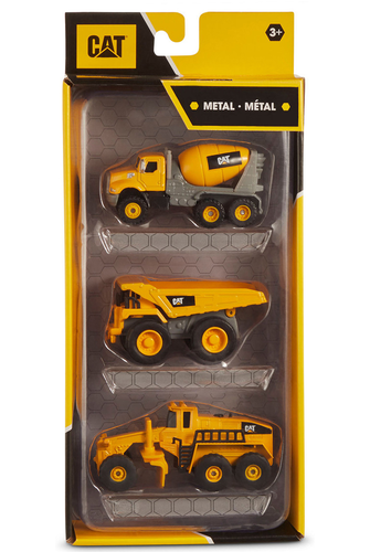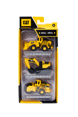 When there's heavy work to be done the rugged machines in the Cat Metal 3 Pack are ready to roll. These high quality vehicles are built to live up to the Cat standards for quality product and will stand the test of time. The vehicles are push-powered and like the real Cat machines, feature moving articulated buckets, booms, drums, and rollers.