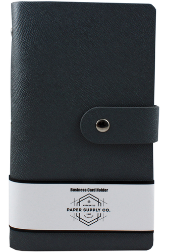 Keep your business cards close at hand with this medium-sized business card holder in black. The holder has 96 card pockets and fastens with an adjustable dome closure.