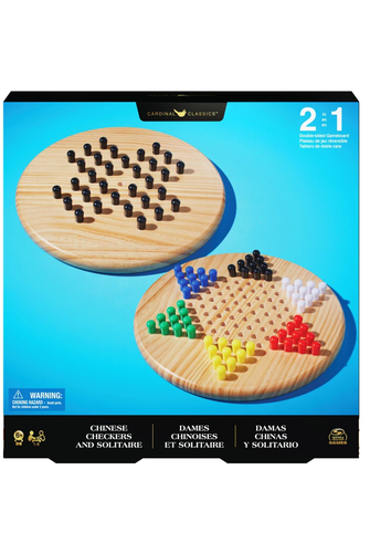 Bring fun and excitement to your game nights using the Cardinal Classics Wooden Giant Chinese Checkers and Solitaire Game Set which lets you enjoy playing two classic games in one board. Solitaire is a single player game. It is a great game to work your mind. The aim of the game is to horizontally jump a peg. When you do the peg you jumped becomes removed off the board, similar to checkers. You must jump every peg until only one peg remains. You can only win by having one peg left at the end of your game. Chinese Checkers can be played by 2, 3, 4 or 6 players. The aim of the game is to race all ones pieces into the star corner on the opposite side of the board before your opponents do the same.- Ages 6+