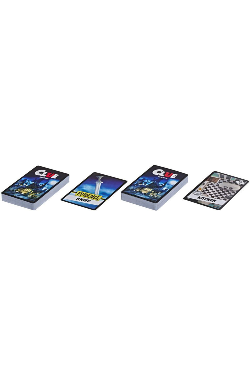 The Classic Mystery Board Game now has a twist as a fast, fun card game! In this version of the Clue game, players use Evidence cards and Case File cards to gather information and eliminate suspects, rooms, and weapons. It's an exciting strategy game as players ask questions about who did the crime, where it was done, and which weapon was used. Ready for an accusation? The cards under the Crime card must match the player's accusation for them to win the game. If the cards don't match, they lose! This quick-playing card game is a convenient way to let your kids take the Clue game with them when traveling or visiting a friend's house.