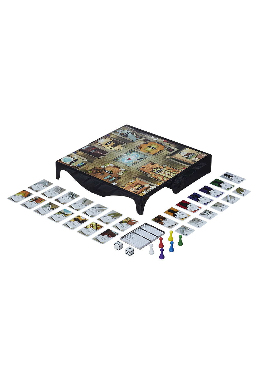- Contains: Gameboard, 6 movers, 6 weapon tokens, 6 guest cards, 6 weapon cards, 9 room cards, 2 dice, notebook and instructions.