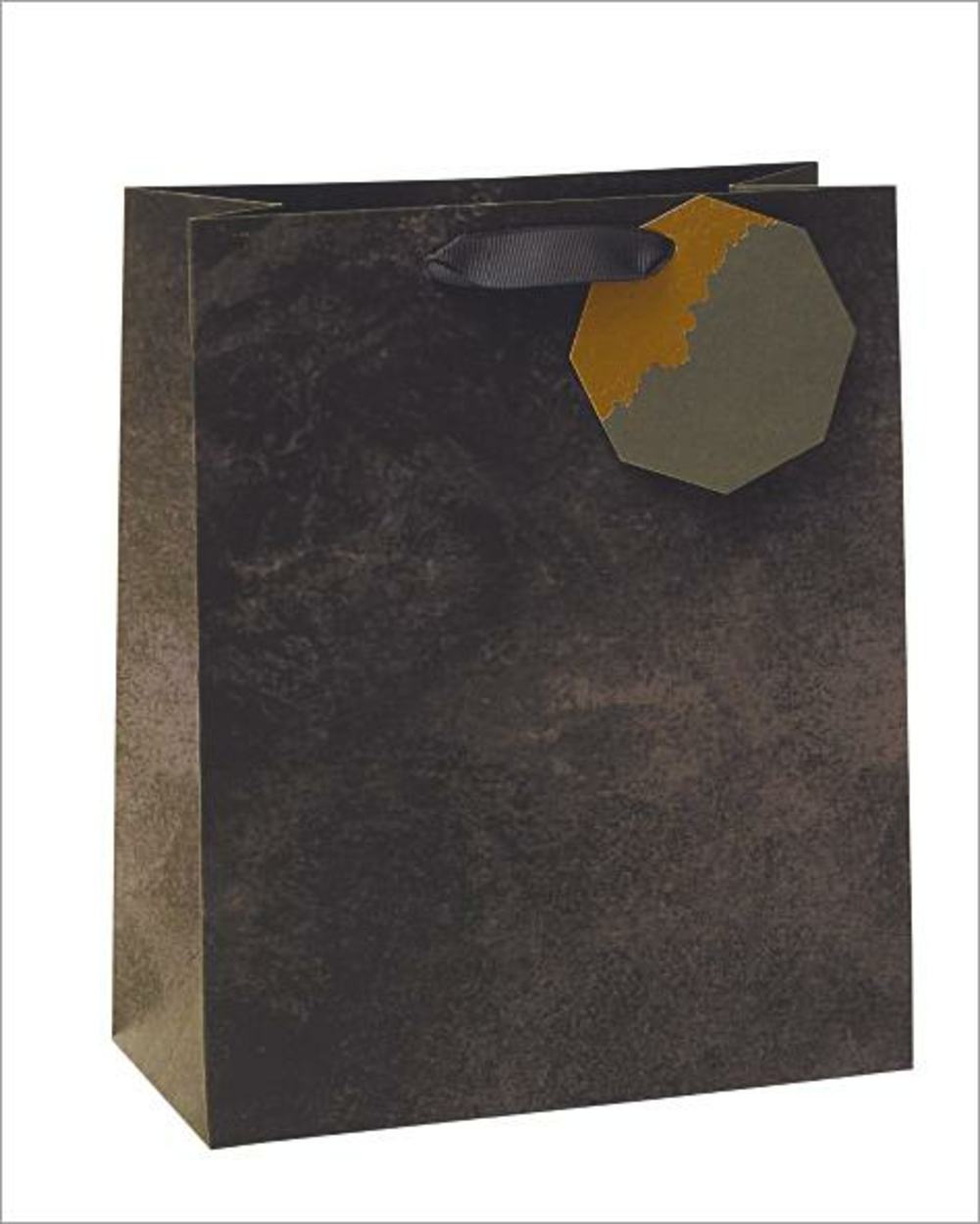 Give a gift in style with this medium sized gift bag, featuring a black marble design and a corresponding tag to write a short message to your loved one.