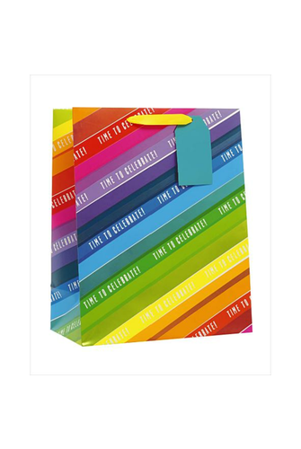 Give a gift in style with this large sized gift bag, featuring vibrant rainbow stripes and a tag to write a short message to your loved one.