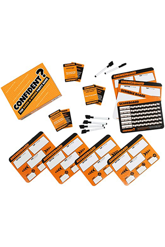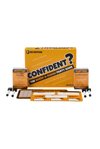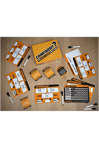 Confident? is an exciting new party game with an outRANGEous twist. You get asked curious questions, but instead of giving a specific answer, you answer with a range. You only need to get it in your range to win points so everyone stands a chance. But, the smaller your range, the more points you win# will you be confident enough?- Ages 11+