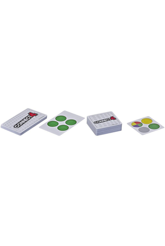 The classic favourite game Connect 4 gameplay now with cards! In this version players choose 2 Mission cards from the deck and keep their patterns a secret. Then they draw Connect 4 Tiles and try to arrange patterns that match their Missions. Whether it's matching 4 in a row of purple, getting a square in green, or matching Tiles to get an "L" shape in yellow, it's an exciting and suspenseful game. Drawing a Tile card with a Power-Up symbol lets players do one-time actions that can change the course of the game in a second. Players aim to complete 4 Missions for the win. This quick-playing card game is a convenient way to let your kids take the Connect 4 game with them when traveling or visiting a friend's house.- Ages 5+