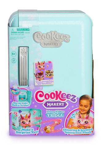 Cookeez Makery will amaze you and your child when they freeze a surprise plush best friend. As they open the fridge door, they will discover their own shivering and scented interactive plush friend in the shape of a yummy smelling frozen treat. Cookeez Makery Freezy Cakez comes with everything children need to mix and create a surprise frozen treat. When they first open the fridge door, they will find the ingredients and decorations that inform them which friend they will bake. There's a chance of making a unicorn, polar bear or tiger. Let's get cooking! First, they mix the ingredients to create a cake ball. Then, using the dough mould, they make their ice cream cake layer. They will then add the ice cream sachet to the top of their ice cream cake and add the decorations. It's that easy! Then, pop it in the fridge and shut the door, turning the fridge setting to 10 degrees. In 20 seconds, kids will hear a "ding". It's time to open the fridge and meet a new friend. Wow! A shivering and deliciously scented plush toy that's interactive to play with. Their new frozen friend will make lovable sounds when your child squeezes and loves it. With Cookeez Makery Freezy Cakez, making friends is easy. Which Freezy Cakez will they make? There are 3 to create - Strawberry Unicake, Minty Polar Bear and Tiger Berry Ripple. Children can repeat the process again and again to wow family and friends. You will make their day when you give your child a Cookeez Makery - Freezy Cakez.- Ages 5+