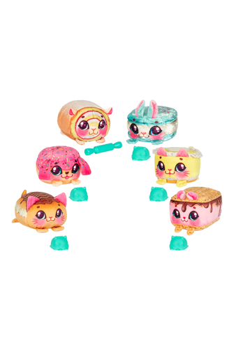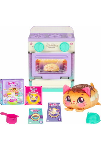 With the Cookeez Makery "Cuddly Creations" oven play set, little bakers can bake their new best cuddly friend and amaze everyone. The oven hides her own plush toy that smells deliciously and looks like a baked treat. The Cookeez Makery Cuddly Creations Oven Playset contains everything you need to bake a special surprise. At the beginning, ingredients, a measuring cup and accessories are ready in the oven. It doesn't take more to create a sugar-sweet treat. Let's go! First, the ingredients are mixed into a lump of dough. With the dough mould or rolling pin, the baking takes shape further. Finally, only some decoration is missing. Handmade in no time at all. And now go to the oven and door - and don't forget to set the clock. After the baking time has elapsed, it's time to look into the oven and make acquaintance with a new friend. Wow! Inside there is a delicious scented plush toy that provides special fun. Make baking a breeze with the Cookeez Makery Cuddly Creations Oven Playset. Which pastry is conjured up here? Six animal treats with their very own delicious scent are waiting to be prepared: Bow-Wow Berry Donut, Mousemallow Smore, Purry Eclair, Banana Kitty Cream Cake, Squeaky Swiss Roll and Bunnyroon Biscuit! They can be baked over and over again to delight friends and family every time. The oven with cuddly creations from Cookeez Makery is guaranteed to sweeten the day for all little bakers.- Ages 5+