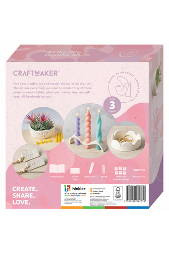 Embrace your creativity with Craft Maker Air Dry Clay! Perfect for crafty adults, this kit provides instructions to help you master the art of making beautiful homewares and personalised pottery. Discover the joy of moulding and sculpting as you learn a new skill to unwind and relax. With easy-to-follow instructions, you can create stunning, one-of-a-kind pieces without the need for a kiln.