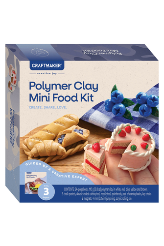 Bring your creativity to life as you craft with this Craft Maker Polymer Clay Mini Foods Kit. Indulge in some soothing crafting time as you make the most adorable little mini creations. Inside this kit is everything you need to make a bread basket and charcuterie board, and blueberry earrings plus step-by-step instructions to make a strawberry cake! All handmade by you!