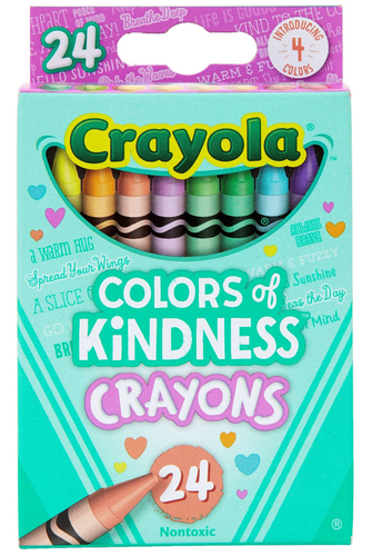 - Contents: 24 Colors of Kindness Crayola Crayons in assorted colours