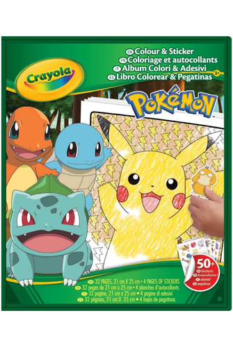 This Crayola Colour and Sticker Book features all your favourite Pokemon, including Pikachu, Charmander, Bulbasaur, Squirtle and more. It has 32 colouring pages and comes with more than 50 stickers across 4 sheets to enhance the colouring pages further. Colouring books make great entertainment for rainy days at home or while traveling.- Ages 3+