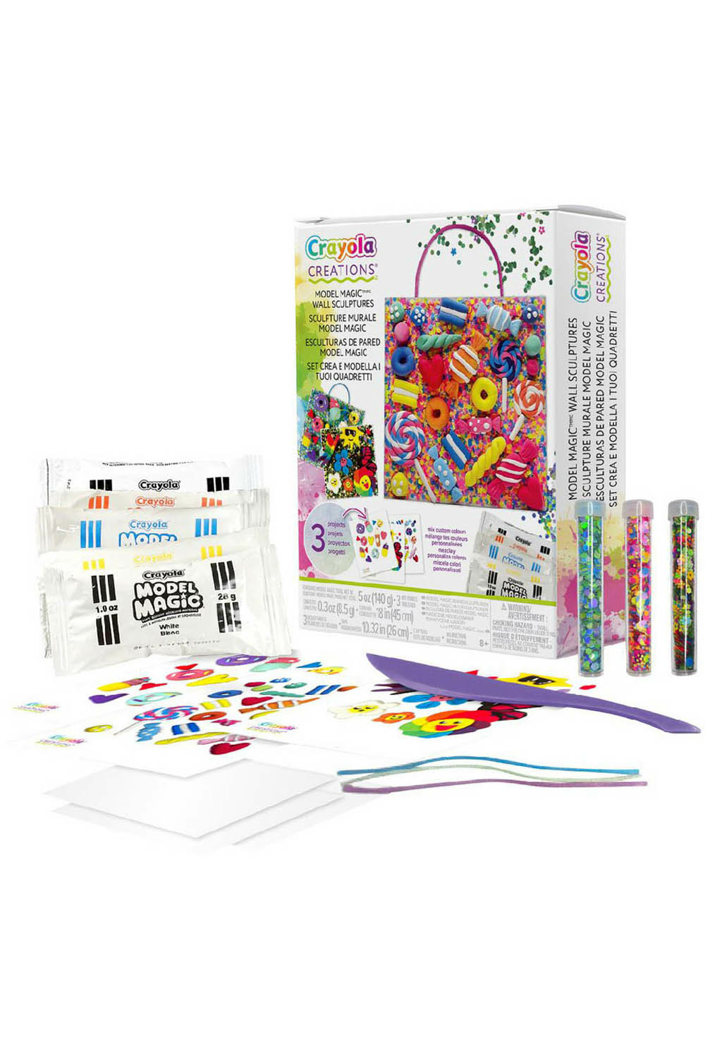 Create your own unique wall decor with Crayola Creations Model Magic Wall Sculptures kit. Use the design sheets to get inspired as you create your very own custom wall art using Crayola Model Magic! This kit includes 5 packs of Model Magic (140g), 3 art panels, confetti, cording, 3 design sheets, tape, clay tool and instructions. Makes a perfect gift for holidays, birthdays and every occasion in between!