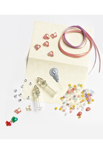 Store your secrets inside these bottle necklaces. Make 2 message necklaces with this kit. Write secret messages and put them in the mini glass bottles. String each bottle and an assortment of delicate beads onto the satin ribbon. Keep one necklace and give the other necklace to a friend. Creativity Kits, also known as Mini Kits, are big fun in small boxes. These quick and clever crafts are perfect for parties (activity and/or party favours), travel and rainy days.