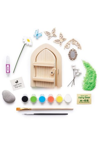 Enter an enchanted fairy village with a ready to decorate fairy door kids painting craft! Personalize your fairy door with weather-resistant craft supplies and fun accents! The beautiful wooden fairy door opens and closes, revealing more to paint and decorate. Give the gift of creativity with a unique craft for girls and boys! Everything you need to paint and decorate a fairy door is included, just add imagination! Complete set includes a wooden fairy door, weather resistant paint, paintbrushes, fairy accents, and more! Build creative confidence with an easy and fun painting craft for girls and boys! Personalize your room or place your fairy house door outside on a tree. The weather-resistant glue and paint will not wash off in rain or snow when placed outside. Endless creative play awaits with this creative gift for kids! The fun will continue long after the craft is complete. Just add imagination to pretend play and dream up stories about your fairyland. Spread happiness and leave a gift in your community by placing your decorated fairy door on a tree! Add a tracking sticker inside your door so neighbours and community members can share on social media when they find your magical fairy house.- Ages 6+
