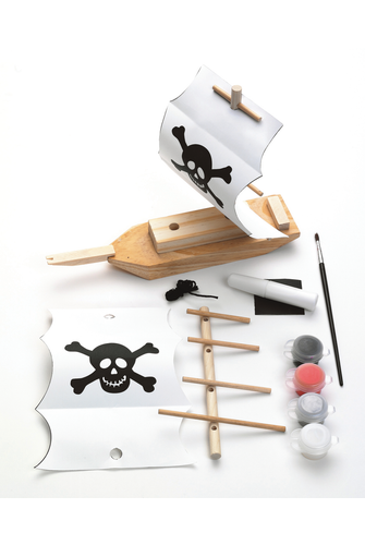 Having a pirate party? The Make Your Own Pirate Ship Mini Kit includes everything you need to assemble and paint your own wooden pirate ship model. Creativity Kits, also known as Mini Kits, are big fun in small boxes. These quick and clever crafts are perfect for parties (activity and/or party favours), travel and rainy days.- Ages 5+