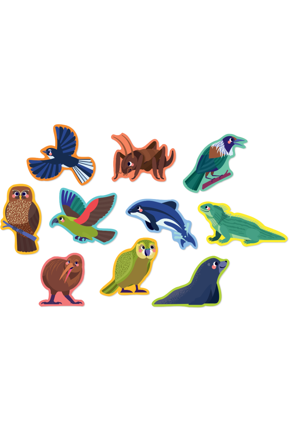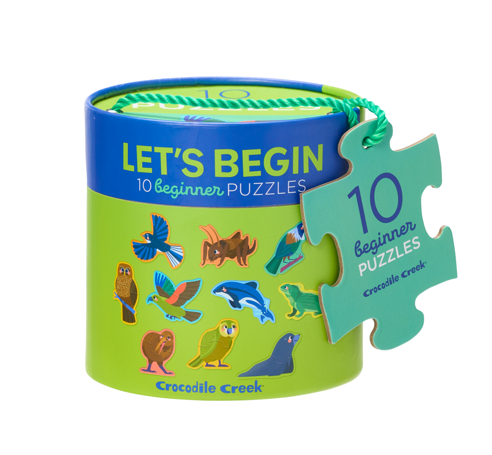 These beautifully illustrated 2-piece puzzles features the animals of Aotearoa Let's Begin puzzles are perfect for a toddler's very first learning experience! Each puzzle set is cleverly packaged in a sturdy canister with a rope handle and a puzzle piece on the outside to show puzzle quality on the inside. Little ones love to carry buckets full of goodies and this canister packaging with a handle will certainly delight them.