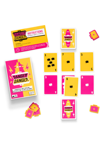 Danger Danger is a game where your team's goal is to have the most Cases showing at the end of the round. You do this by drawing and placing cards, while the other team tries to thwart you. In order to win, you have to finish playing by the time a 60-second timer runs out. Oh, and you can't see the timer at all! That means it's just you, your teammates, and your combined instincts racing against an invisible clock and the other players. Each round is quick, exciting, and guaranteed to make you want to play Danger Danger over and over again.