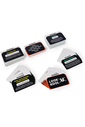 Can you guess the hidden phrase? Be the first to figure out the tricky answer depicted on the card and shout it out for the win. A rotating judge holds a card up so only they can see the answer. Everyone else tries to decode the phrase. Whoever figures out the phrase first wins the card. Test your brainteaser solving ability with word puzzles from this adult party game with answers that range from tame to adult. First to decode three cards wins!