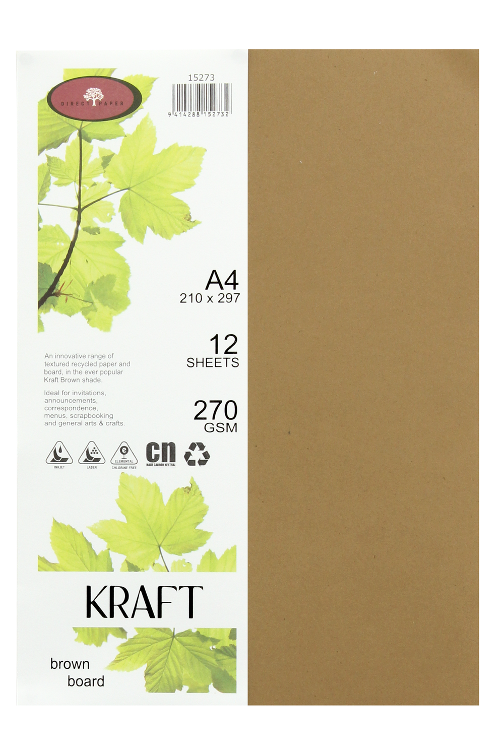 Direct Paper Kraft A4 Board 270gsm Brown Pack of 12