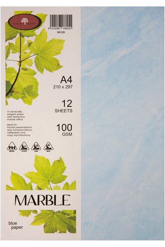 Add a unique touch to your next project with this A4 marble paper. Features a distinctive marble effect. Perfect for publishing, presentations, posters and more. 100gsm. Pack of 12 sheets. Suitable for laser and inkjet printers. The paper is pH neutral and long life.