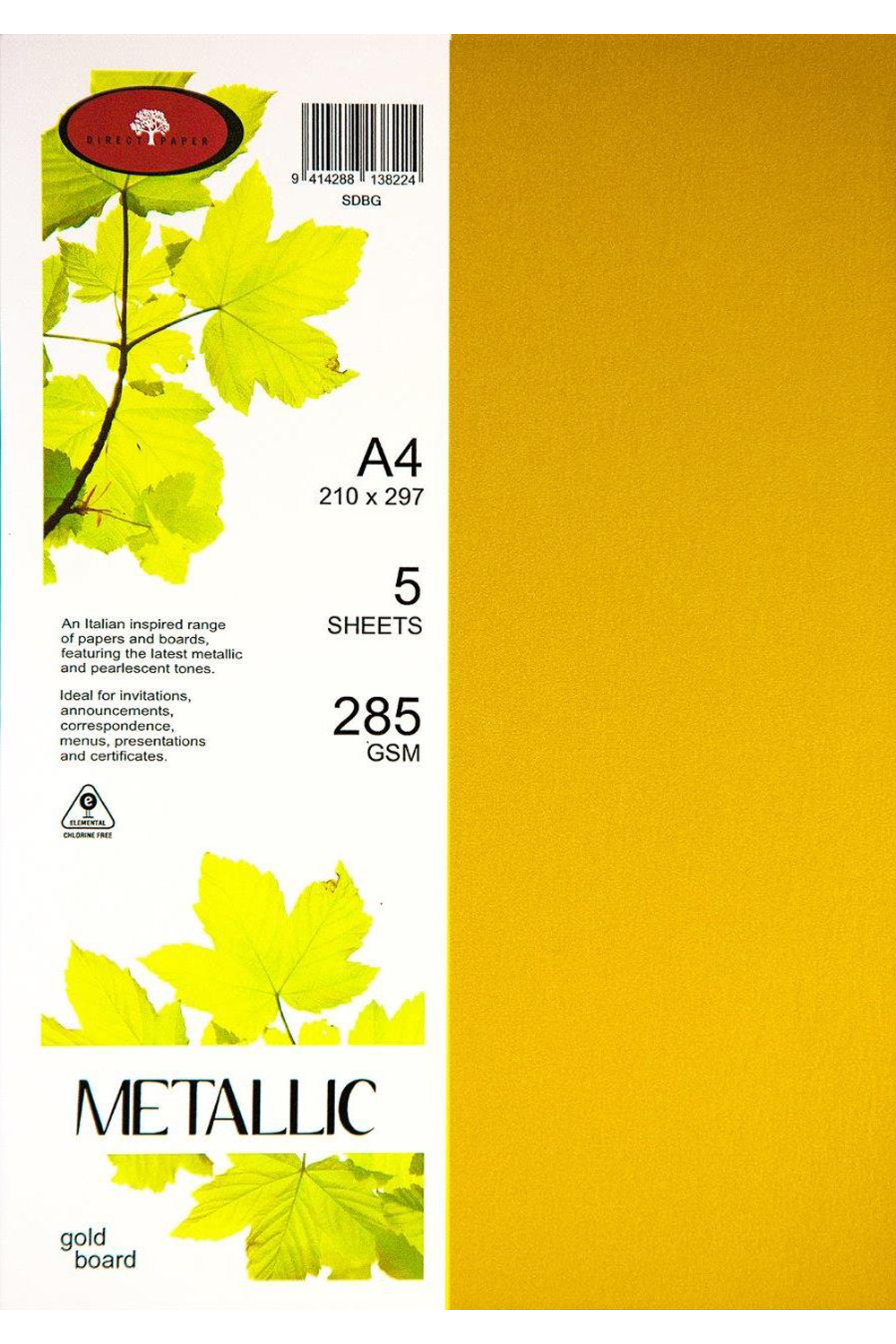 Direct Paper Metallic A4 Board 285gsm Gold Pack of 5