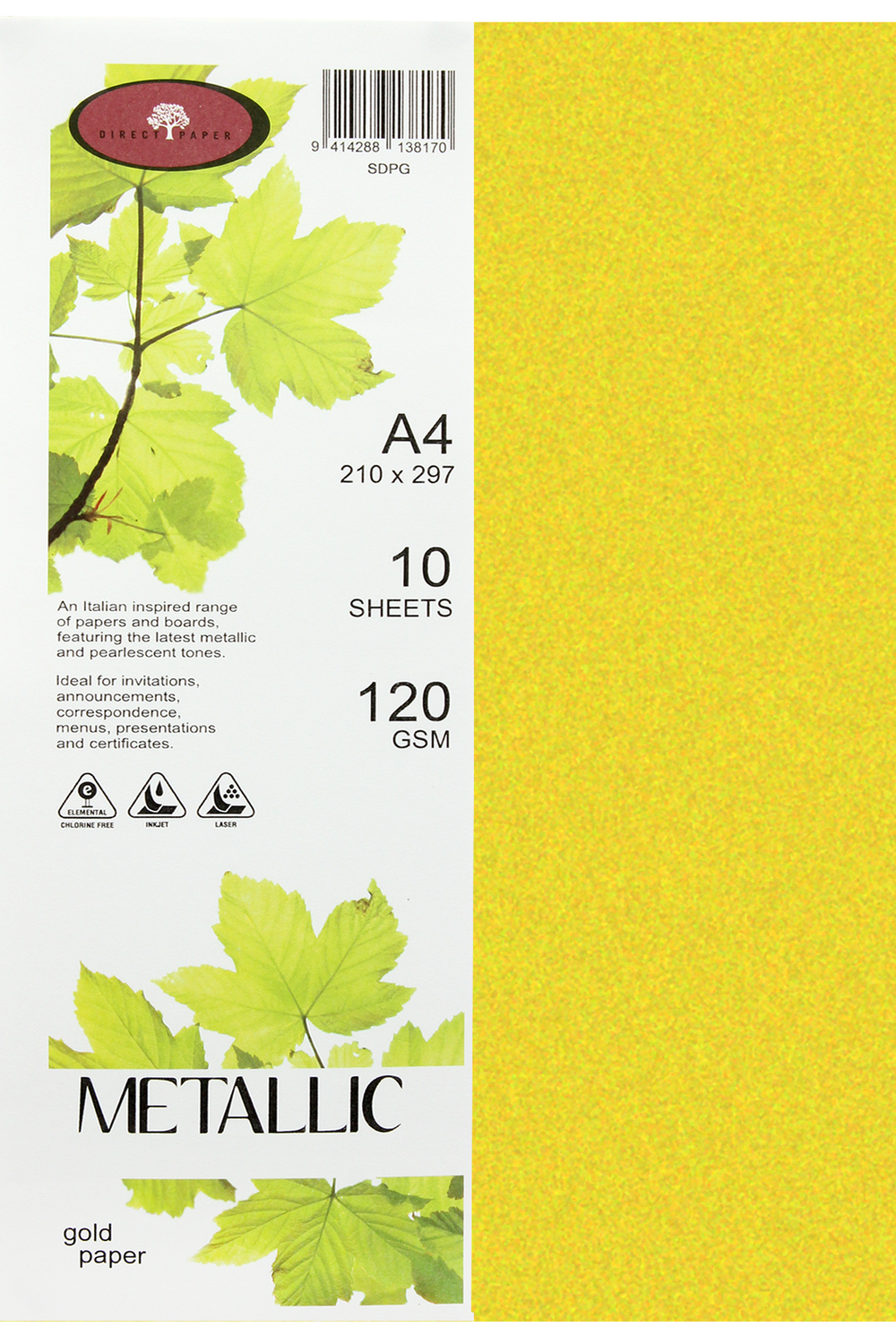 Direct Paper Metallic A4 Paper 120gsm Gold Pack of 10