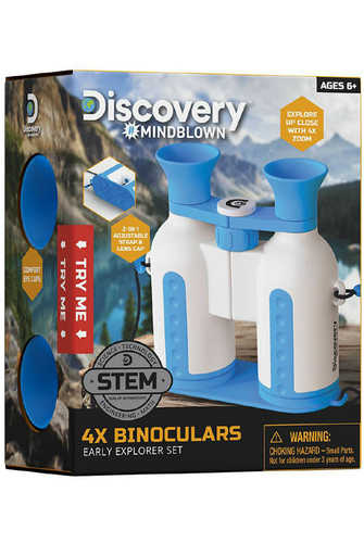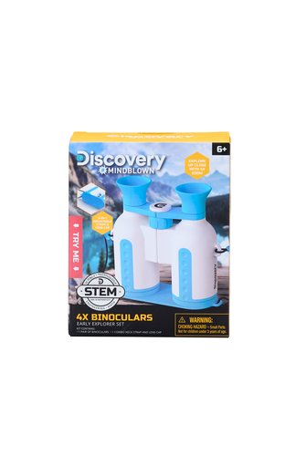 The Discovery #MINDBLOWN Binoculars Early Explorers Set is the perfect companion for young adventurers eager to explore the natural world. Designed for children, these binoculars feature a powerful 4x magnification, bringing distant wonders like birds and landscapes into clear view, ideal for bird watching, hiking, or any outdoor adventure. The dual-purpose neck strap doubles as a lens cap, ensuring practicality and ease of use. Comfortable eye cups and adjustable width allow children of various sizes to use the binoculars comfortably and effectively. Beyond just fun, these binoculars provide educational value by promoting a deeper understanding of nature and science, making them a fantastic resource for parents and educators to foster a love of the outdoors and enhance observational skills in children.