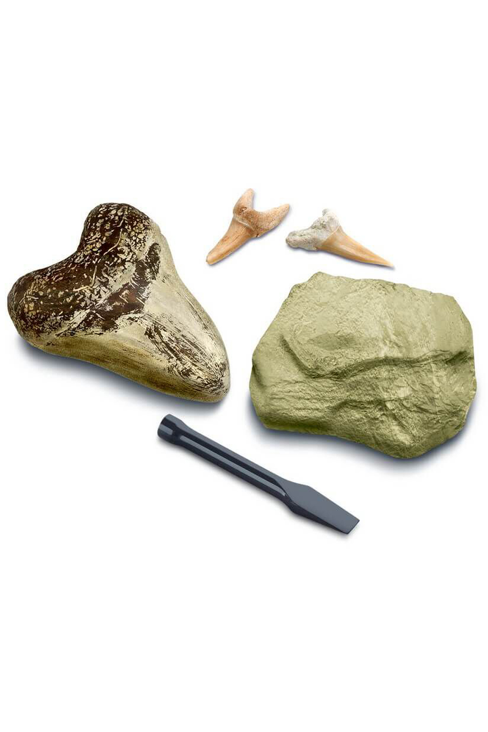 Explore paleontology with this shark tooth dig kit. Start a real collection that any junior scientist will be happy to show off. Included are the necessary tools to help further your child's education long after they have dug up the teeth. Each kit comes with a chisel to allow for excavation and a "Brain Blast" educational poster with fun science facts and experiments on it. You'll also get access to an exclusive app to help teach kids who have gone digital. This fun and educational STEM kit promotes hands-on learning to develop skills in science and paleontology. Children will enjoy digging into the brick to search for exciting scientific specimens and they will learn critical skills in the process.