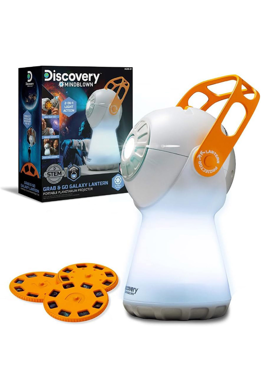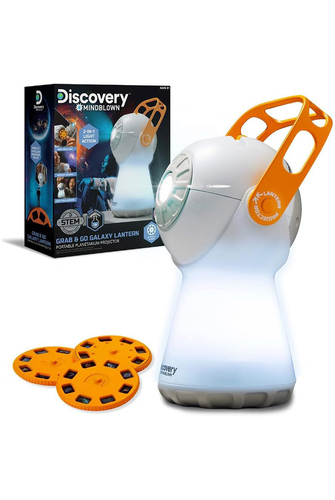 Featuring a 2-in-1 planetarium projector with ambient lantern mode, your kids will be ready for big adventures using this Portable Planetarium Projector. Illuminate your child's world with awe-inspiring images of galaxies, planets, and celestial wonders projected onto walls and ceilings using this portable, battery-operated lantern. Explore the marvels of space with 3 slide wheels offering 24 stunning photos of celestial phenomena, providing a captivating and educational visual experience. Keep the fun going with an included bonus poster featuring educational space facts and images. Rotate the light and turn the projector into a portable lantern providing ambient light for rooms, sleepovers, camping, and more! The built-in handle is perfect for little hands to take on-the-go! Keep the slide wheels safely stored in the integrated hidden compartment, ensuring easy access, clutter-free surroundings, and convenient transportation. At the intersection of inspiration, curiosity, & STEM-based edutainment, our toys help spark the imagination & promote the development of science, technology, engineering & math skills.