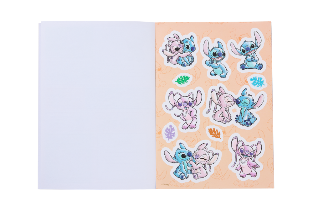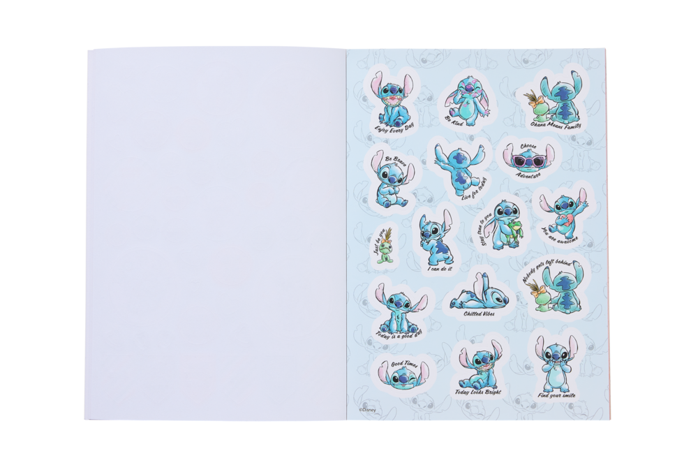Aloha! Create your own fun adventures with the stickers in this Disney Stitch Sticker Book featuring an adorable image of Stitch on the cover! This stickerbook features 16 sheets of self-adhesive Stitch-themed stickers for craft projects or to decorate schoolbooks.