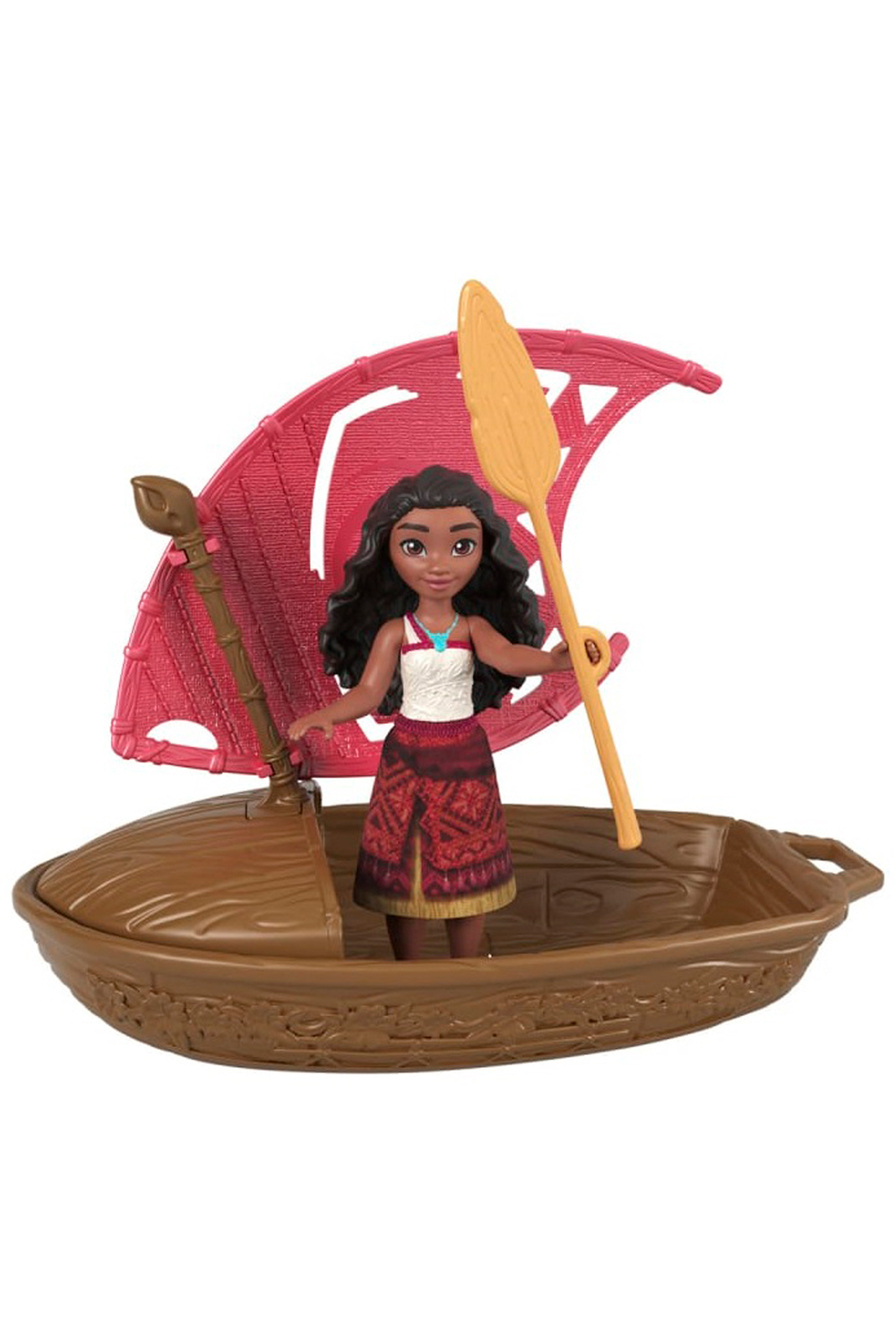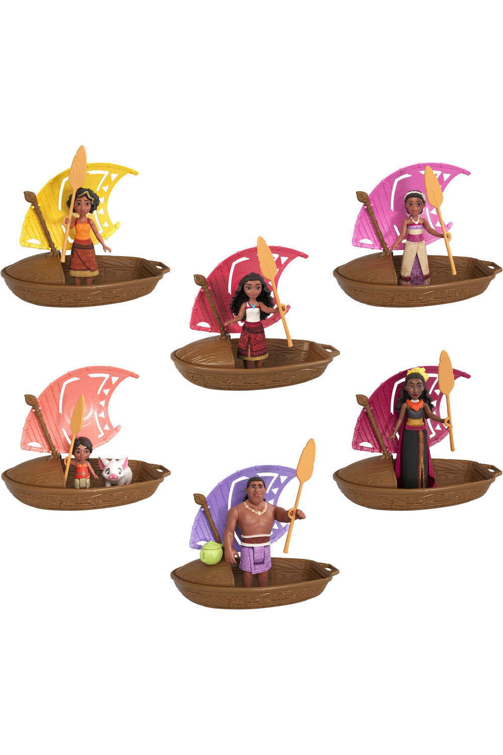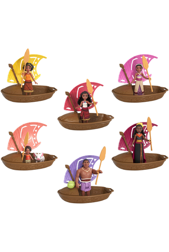 Unbox a surprise inside each Wayfinder Wonders small doll set inspired by Disney's Moana 2, the theatrical sequel to the original film! Lift the sail and uncover a character doll nestled in the canoe. Assemble the toy canoe and set off on an ocean adventure -it really floats! Kids can collect the 3.5-inch-tall Moana, her little sister, Simea, the mysterious demigod Matangi, and more fan-favourite small dolls, each with a different sail colour and a unique oar accessory. Set sail for bath time and beyond with one or all six floatable Wayfinder Wonders! Each sold separately, subject to availability. Dolls cannot stand alone.