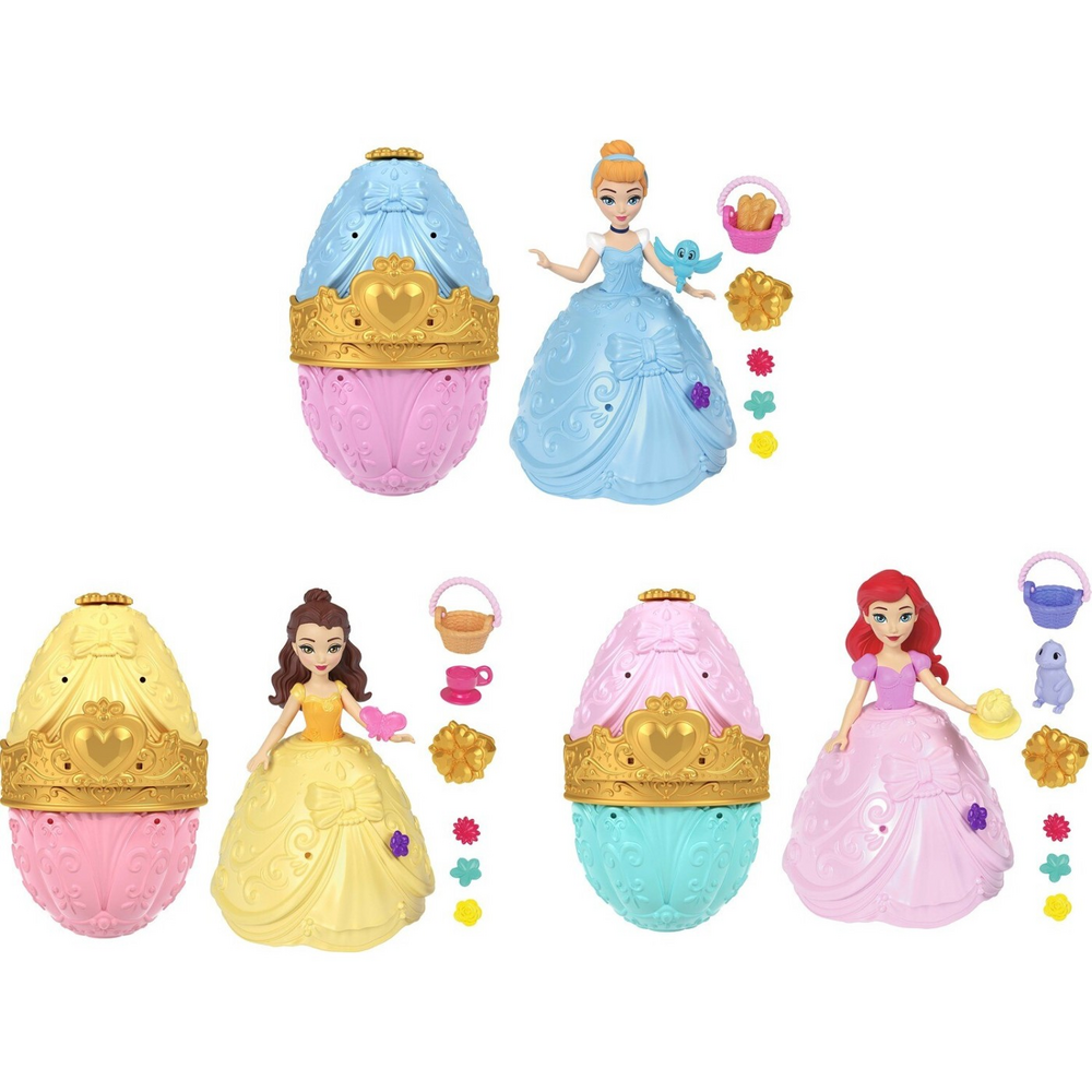 Add a Disney surprise to kids' Easter baskets or egg hunts with Disney Princess Easter Egg Surprise dolls! Open the Easter egg to discover an adorable Princess small doll inside, inspired by animated characters in Disney movies. The egg becomes two skirts for the doll and includes a tiara and ring for the child to wear! Picnic-themed play pieces inside extend the storytelling fun. Look for all three Disney Princess characters to make an Easter to remember!
