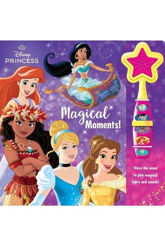 Explore enchanted moments with Cinderella, Belle, Moana, Jasmine, and Ariel! Wave your light-up wand and press the buttons to help make the magic happen! Motion-sensing wand plays 8 sounds, with colorful LED lights! Matching words with pictures and sounds enhances reading comprehension, and connecting with favorite characters engages young readers at story time.