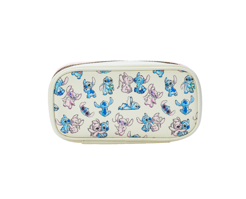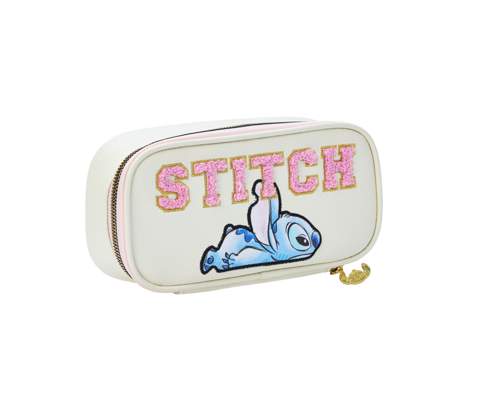 Keep all of your stationery safe and organised with this pencil case featuring an adorable image of Disney's Stitch on a cream pencil case with a golden Stitch head as the zip pull. This pencil case features one zip compartment and a pink zip.