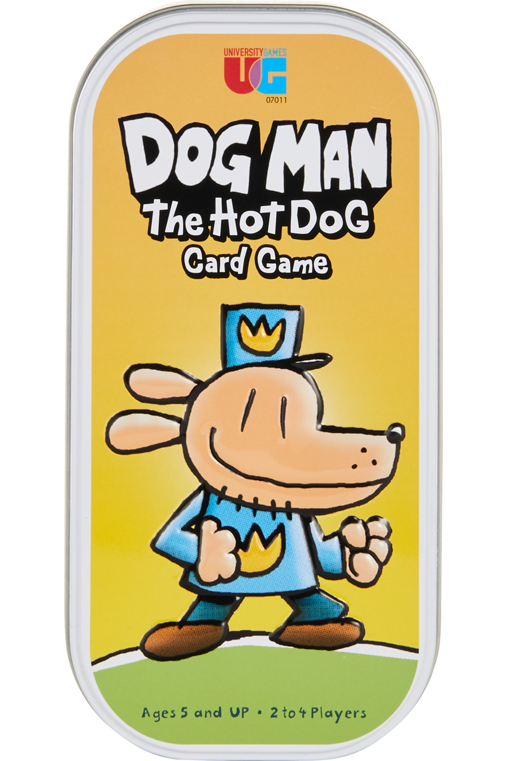 Dog Man loves hot dogs! In this fast-paced card game, players work to 'eat' as many hot dogs as possible. Watch out, if Petey appears, all of the hot dogs go into hiding. The handy travel tin makes this easy for storage and perfect for taking on-the-go